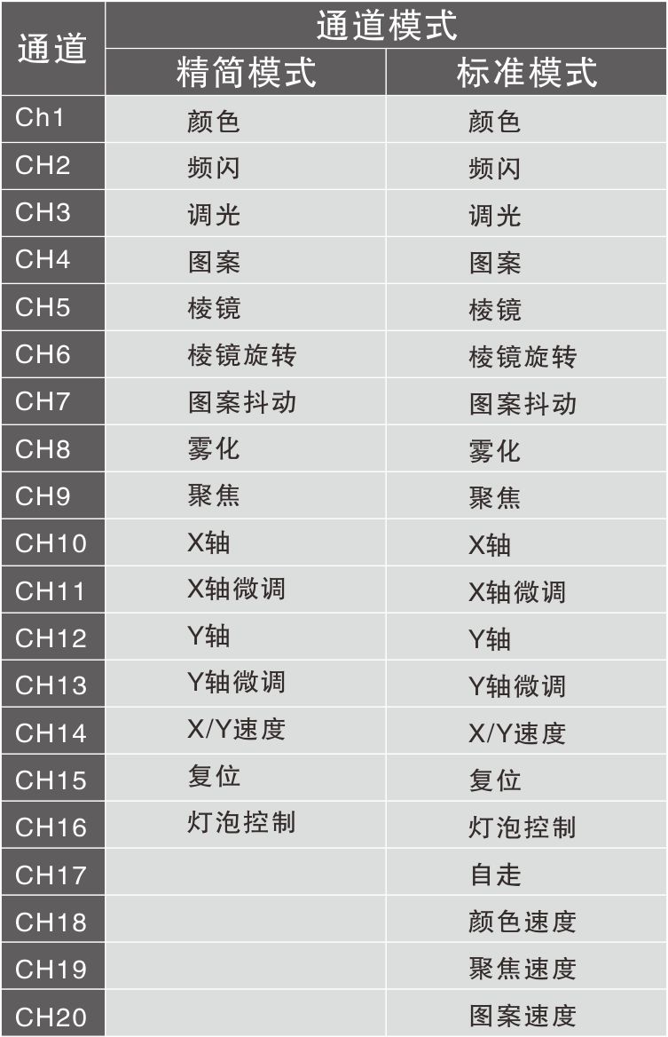 DMX 通道:16/20通道模式