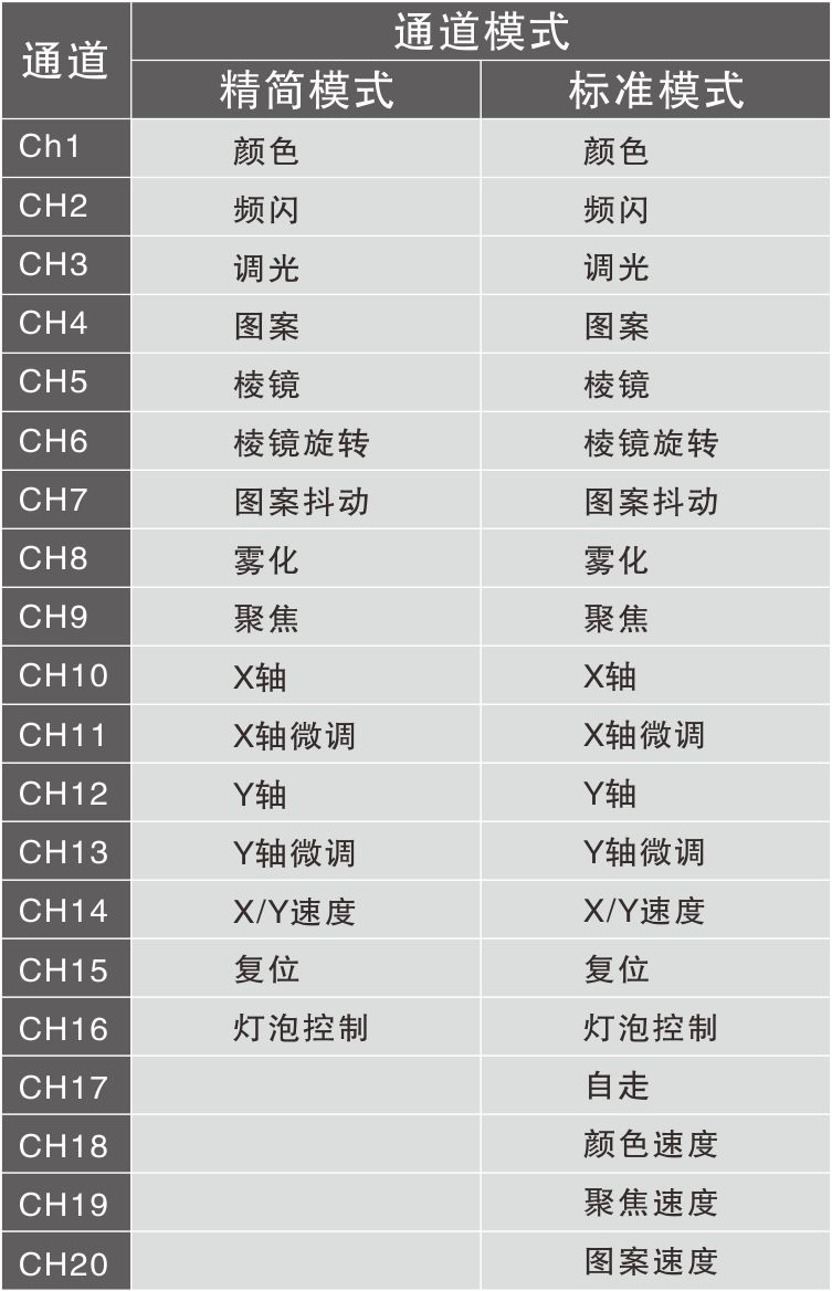 通道數量:精簡模式16個通道;標準模式20個通道
