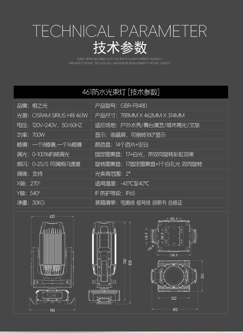 其他功能:6層鍍膜高精密膠合光學鏡頭,XY定位自動糾錯功能;顯示屏可查詢燈具,燈泡使用時間便于維護;風機自動調速功能;機械閉光時自動降低 50%光源功率;