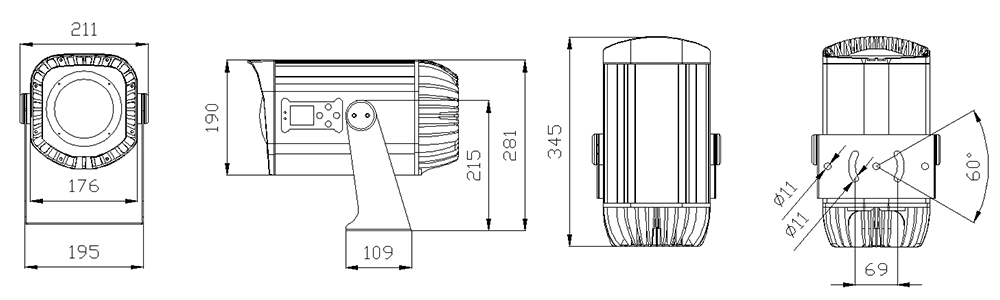 ◆ DMX 輸入 / 輸出:三芯防水信號線